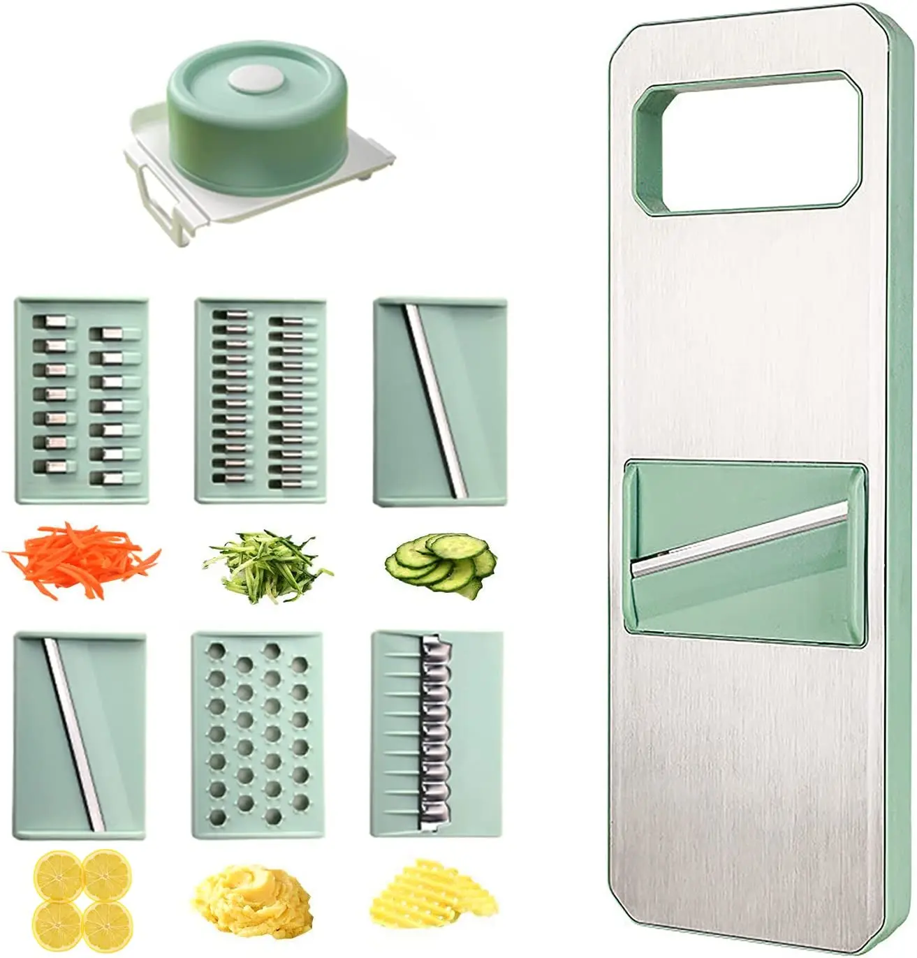What sets this vegetable slicer apart is its six interchangeable blades, allowing you to effortlessly switch between different cuts. Perfect for vegetables, fruits, and more, this tool is a must-have for any kitchen enthusiast.